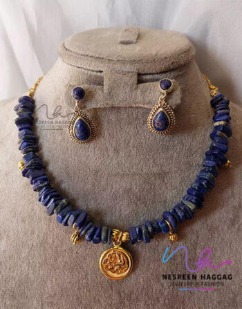 Silver Necklace Lapis Lazuli with text on it: “الØÙ…دالله” by order